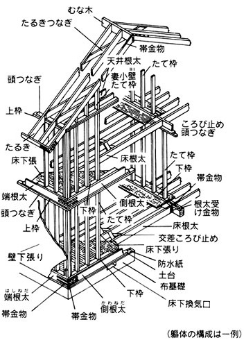 基本的には、日本農林規格(JAS)、日本工業規格(JIS)等に適合したものが定められていますが、部位によって、構造安定性を確保するため使用できる材料・部品の種類・等級が決められているので、選択を誤ることなく適材を適所に使用することが必要です。